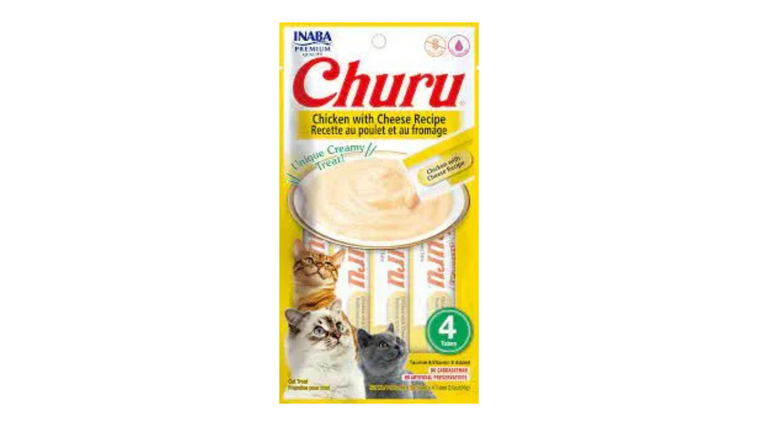 A set of four 14g pouches filled with creamy chicken and cheese. These soft, flavorful treats are perfect for cats as a snack, reward, or meal topper, offering a tasty and easy-to-serve option.