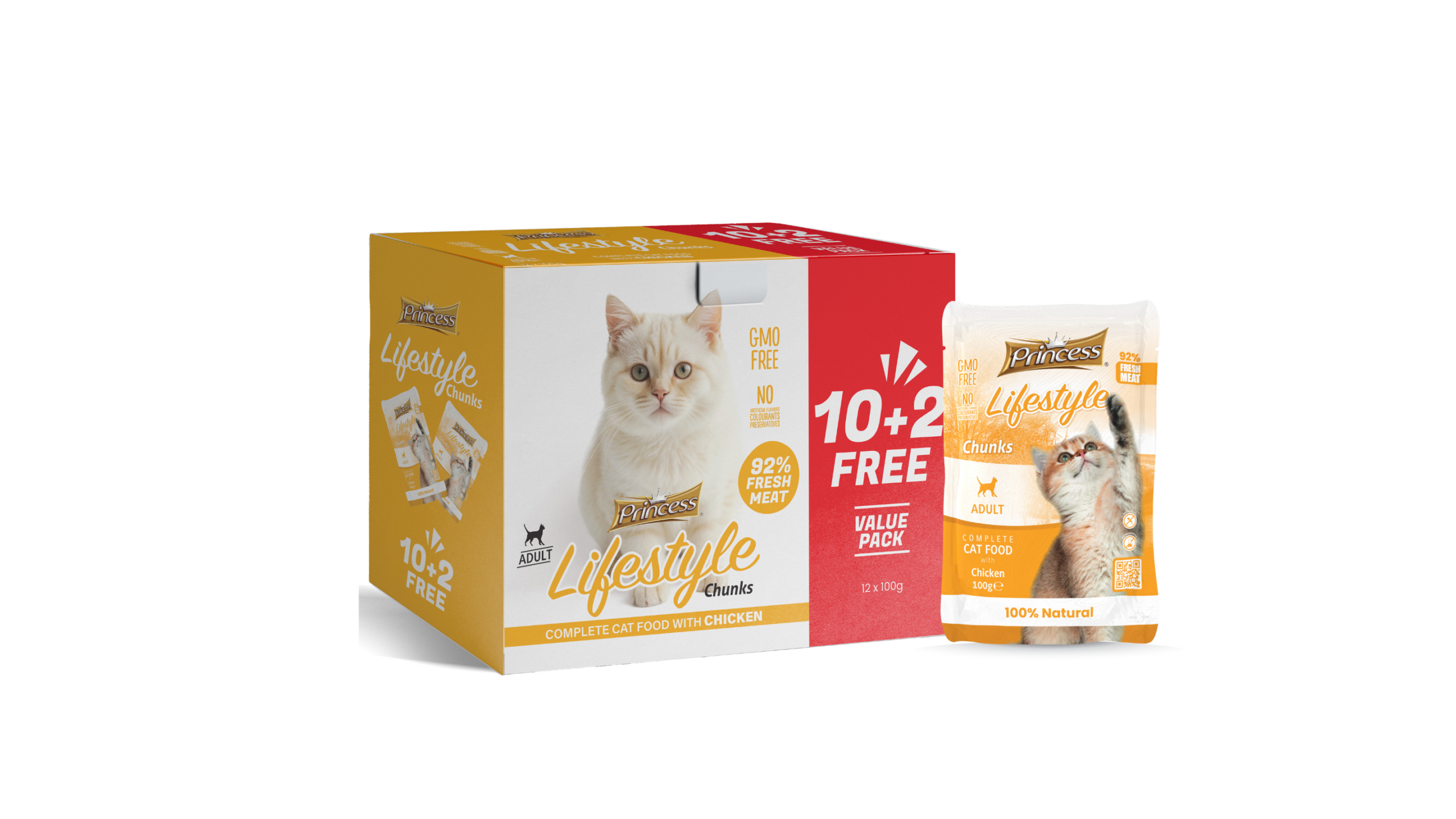 Princess Lifestyle Pouches Chunks Chicken 12x100g (10+2FREE)